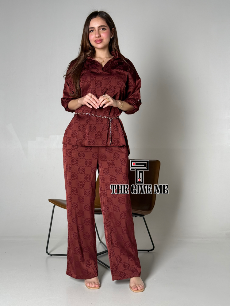 طقم بنطلون وبلوزه بطبعه شموه فخم بحزام علي الخصر