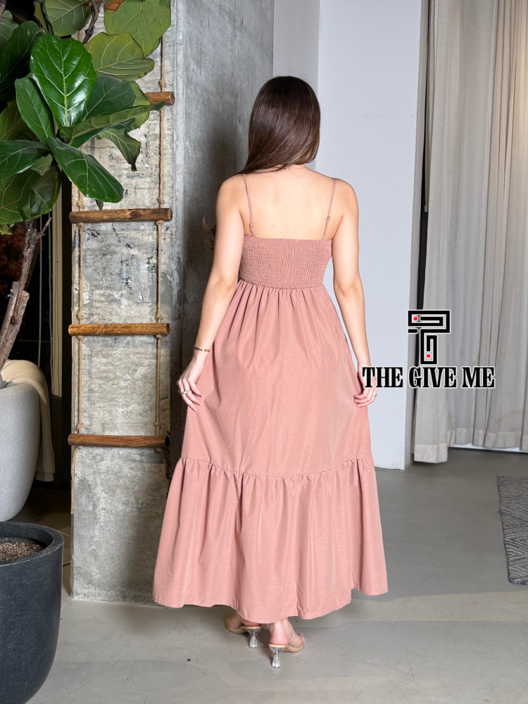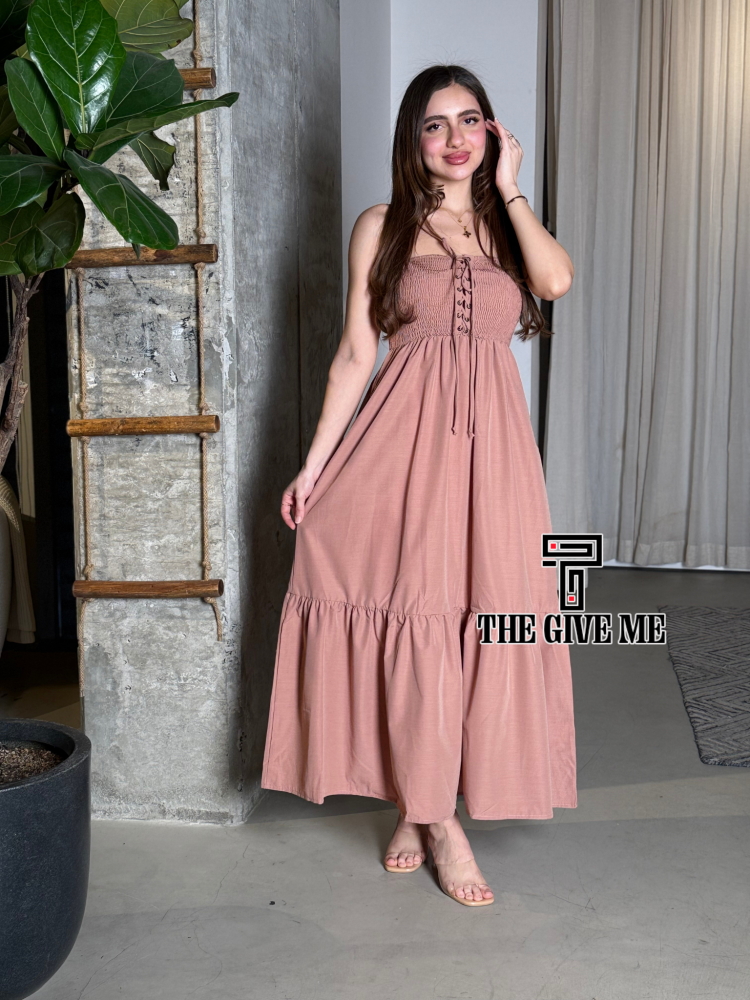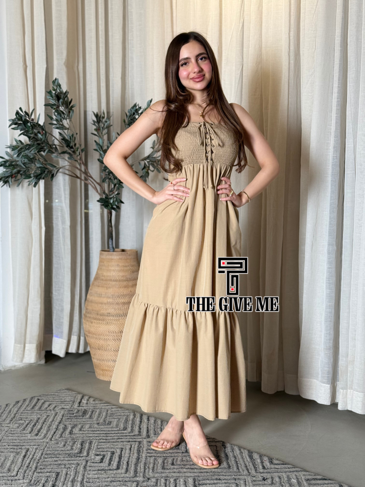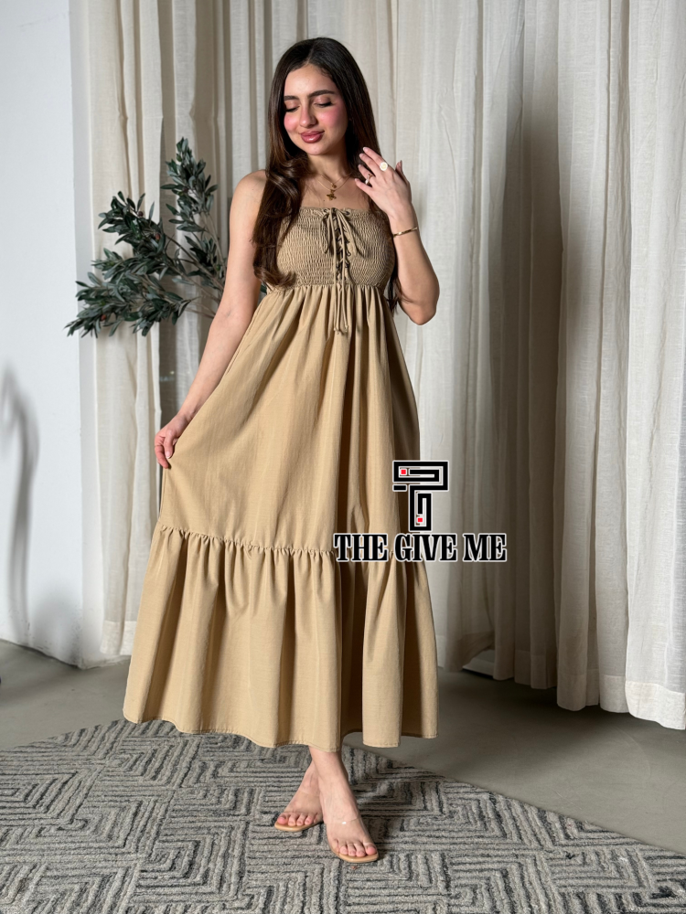 فستان توب ساده بقصه زم علي الصدر مزين برباط علي الصدر