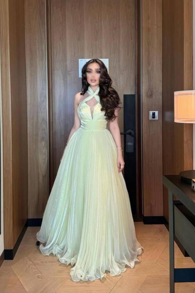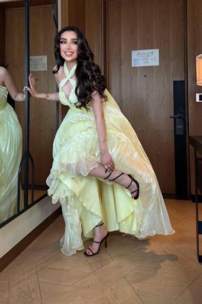 فستان سهرة كلوش لون اصفر