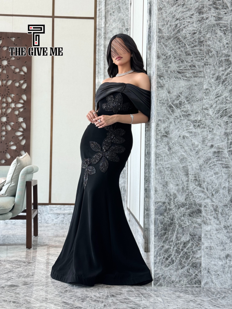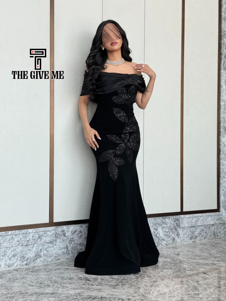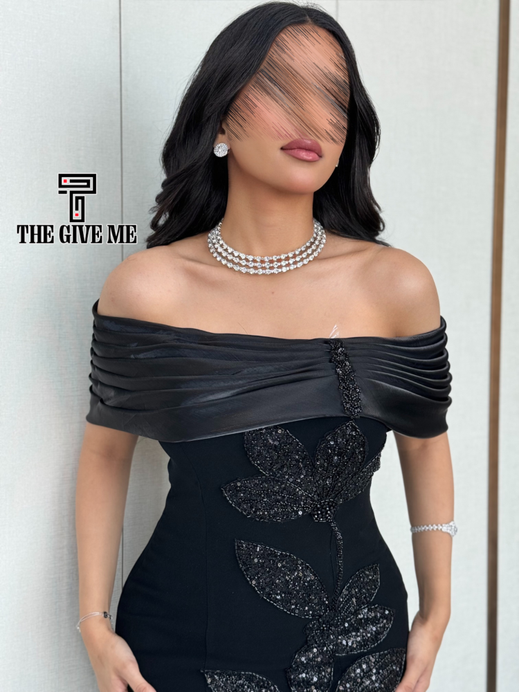 فستان كتفين ارجنزه تطريز بالجنب