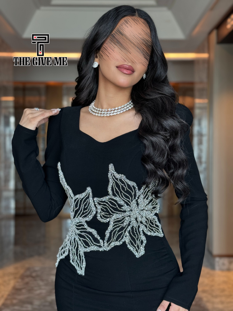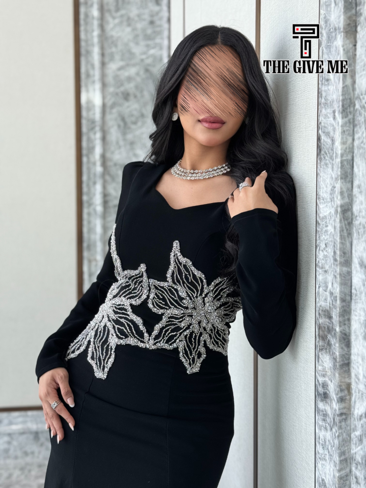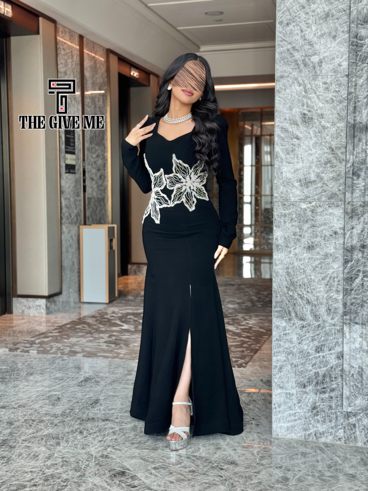 فستان وردتين كمين طويل